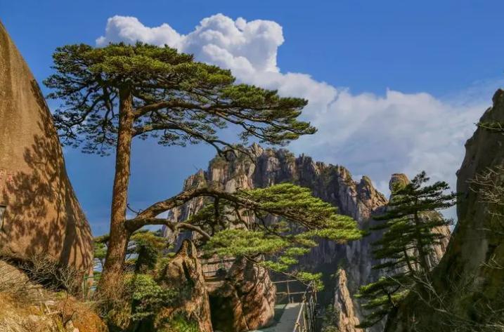 迎客松,本质也是一种松树。说到迎客松,相信大家都非常熟悉了。尤其在中国,在乡镇地区,很多人家的家里的墙上,都会挂着迎客松的大壁画。在我们中国人看来,迎客松代表的就是热情好客、坚韧不拔、富贵荣耀的意思。迎客松生长在安徽黄山上,而且是黄山的山顶最高处了,这里也叫玉屏楼。
