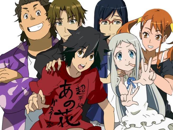不太与人们接触的宅男宿海仁太、有点被小太妹熏染的安城鸣子、进入重点高中的松雪集与鹤见知利子、放弃读高中而展开旅行的久川铁道……只有幼年死去的本间芽衣子(只有仁太能看见的灵魂),还是单纯一如从前。