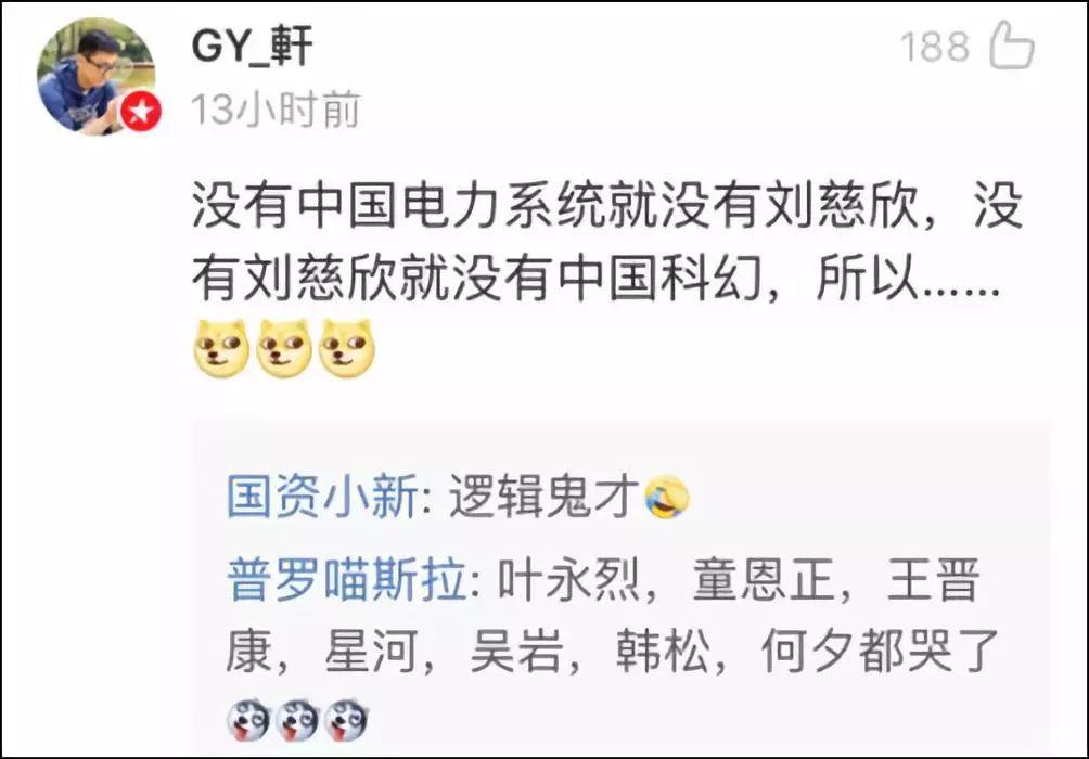在评论中,@国资小新 还多次强调,刘慈欣所说的现象都是以前了,现在任何系统都不可能出现第二个刘慈欣了。
