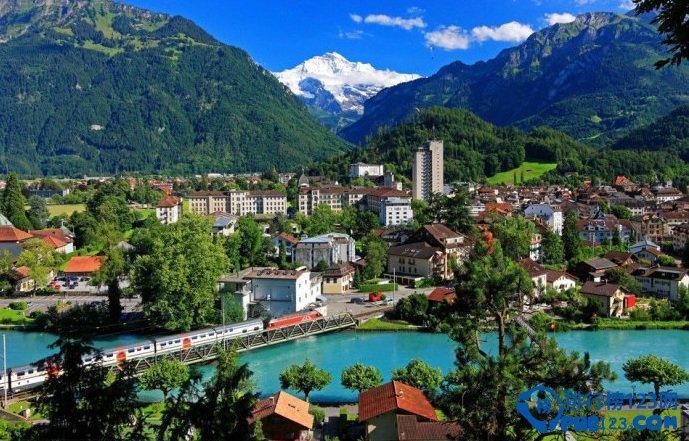 因特拉肯是瑞士的一个因“欧洲脊梁”少女峰而闻名遐迩的旅游小镇,拉丁文的原意即是“两湖之间”,位于图恩湖及布里恩湖之间,又名湖间镇。这里既能泛舟湖上观光,也能乘高空缆车登上阿尔卑斯山的高峰,一览少女峰天然奇观的风采,是欧洲著名的度假胜地。这儿整年气候温和,湖光山色,环境优美,也是瑞士人心目中的避暑山庄。