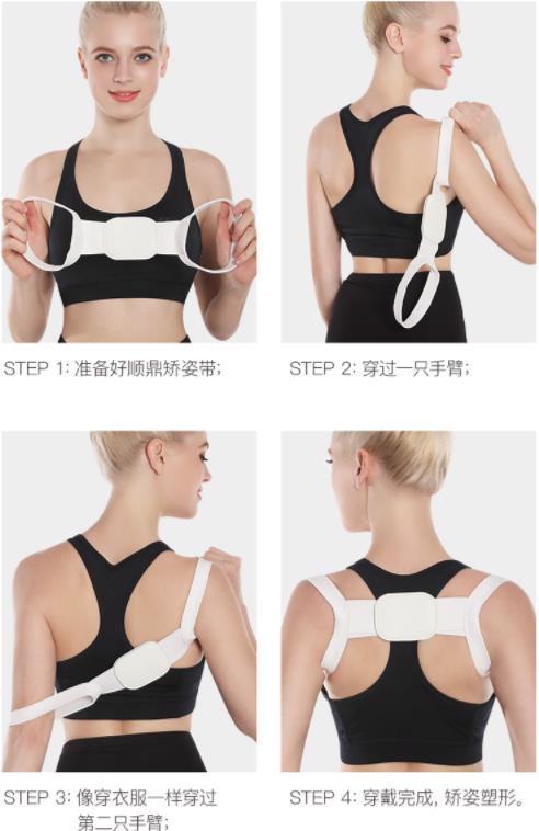 穿戴方法简单,完全告别了过去五花大绑的纠正带,你只需要简单的四步: