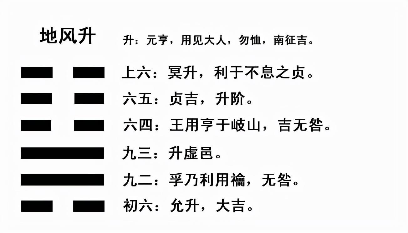 今天我们来讲地风升卦,升卦是易经第四十六卦,上坤下巽,故名地风升。