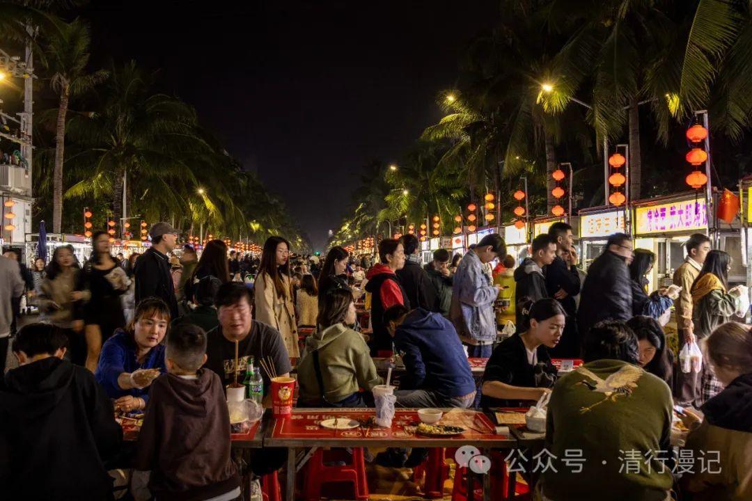 很快食客蜂拥而来,食品种类还不少。我们兴致勃勃地品尝烤生蚝等海鲜,着实便宜美味。