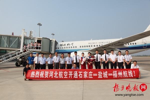 扬子晚报网6月28日讯(记者 施广权 通讯员 耿昌华)6月27日下午,从石家庄飞来的NS3335航班顺利降落盐城南洋机场,停场后又起飞前往福州,标志着石家庄=盐城=福州航线成功首航。