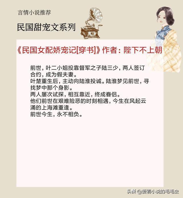 大家好,我是毛毛虫,今天给大家推荐5本好看的民国甜宠文,男主宠妻无比,甜到心坎里!