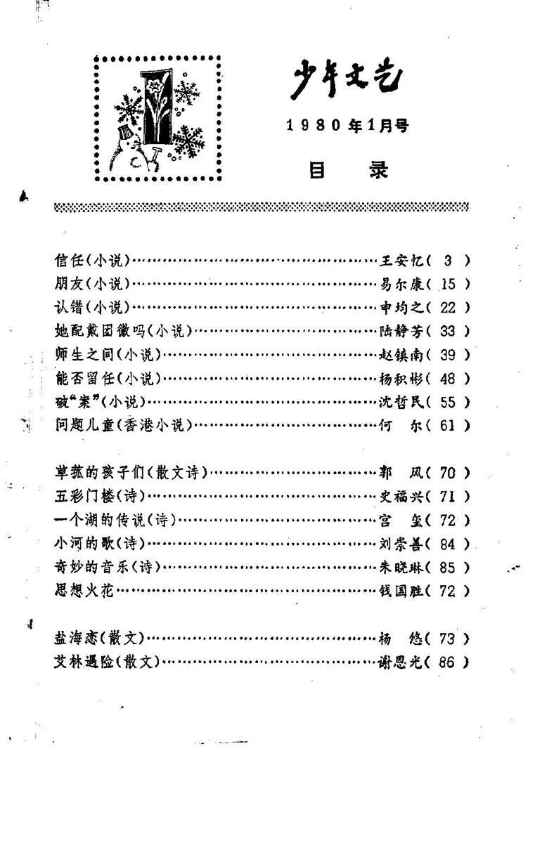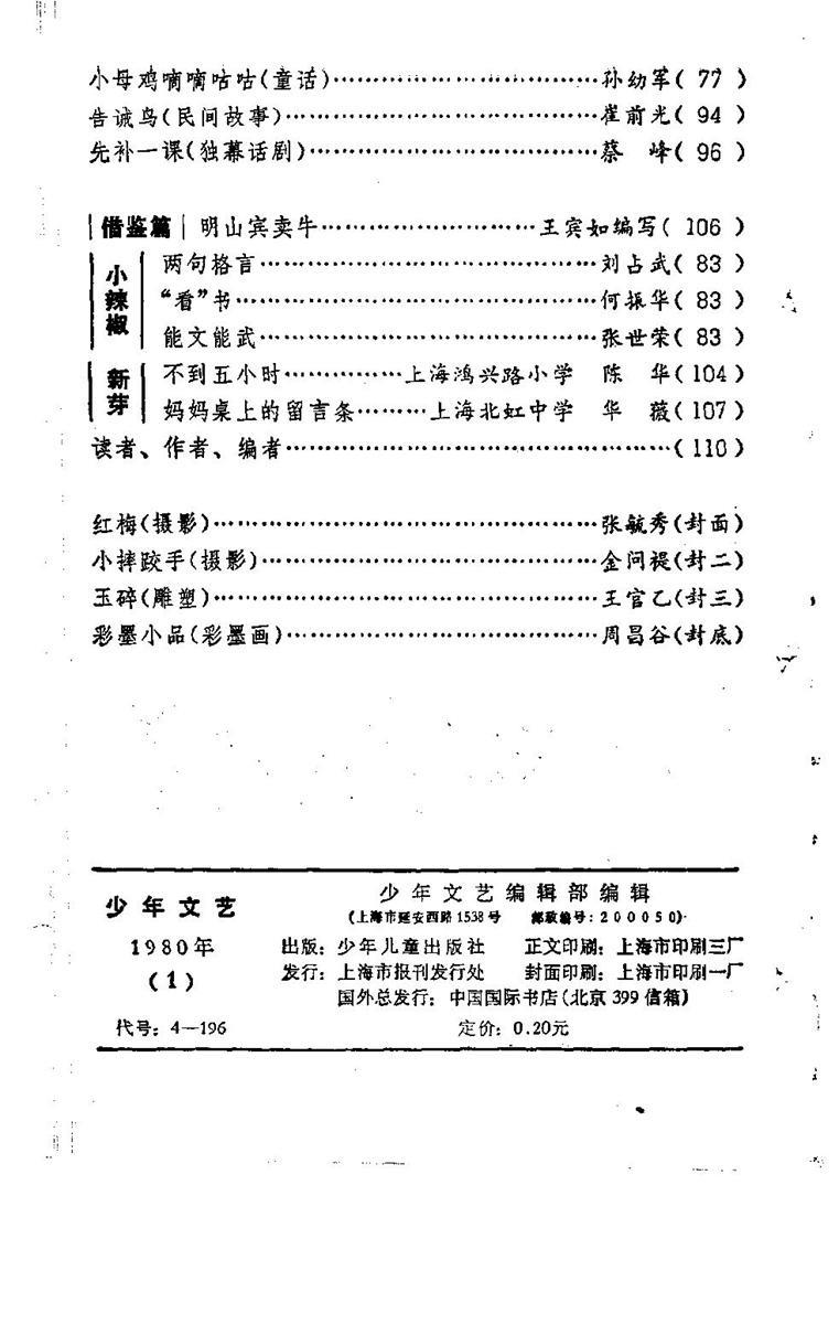 「怀旧书刊」那些年的《少年文艺》1980年第一期(下半部分)