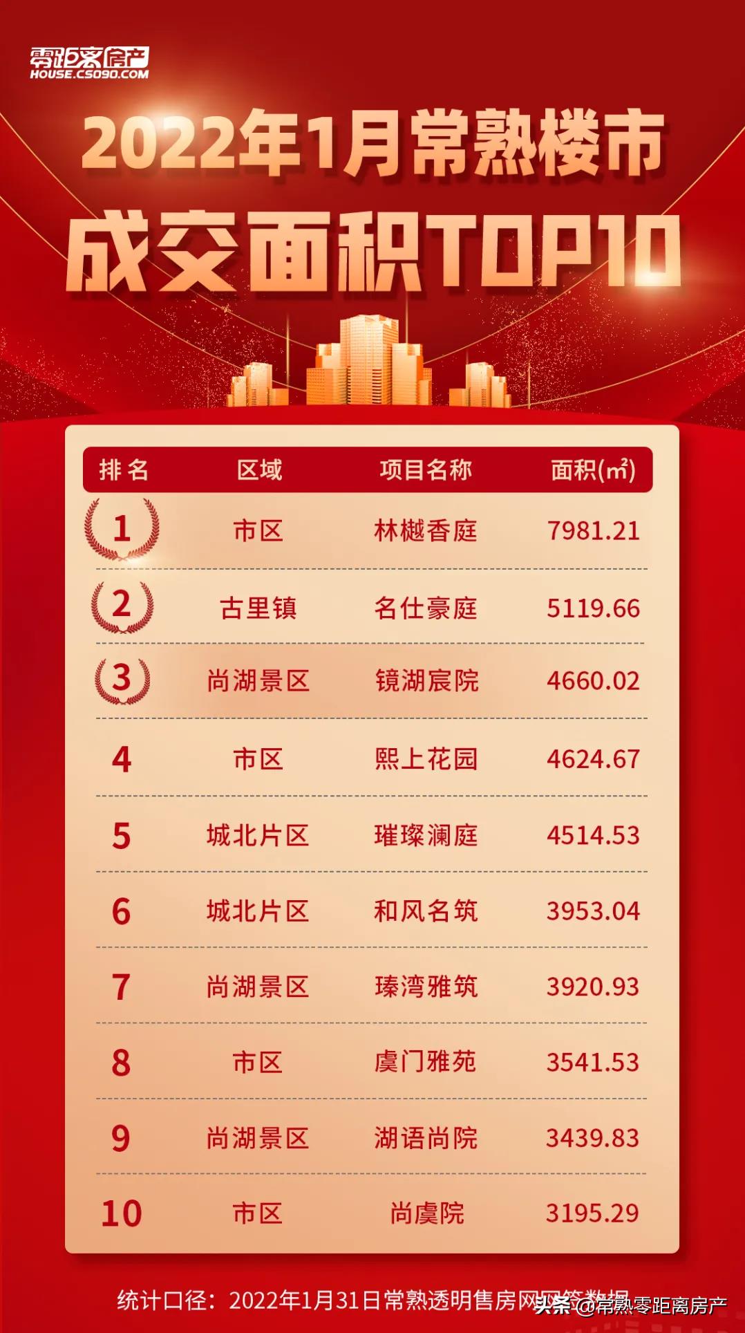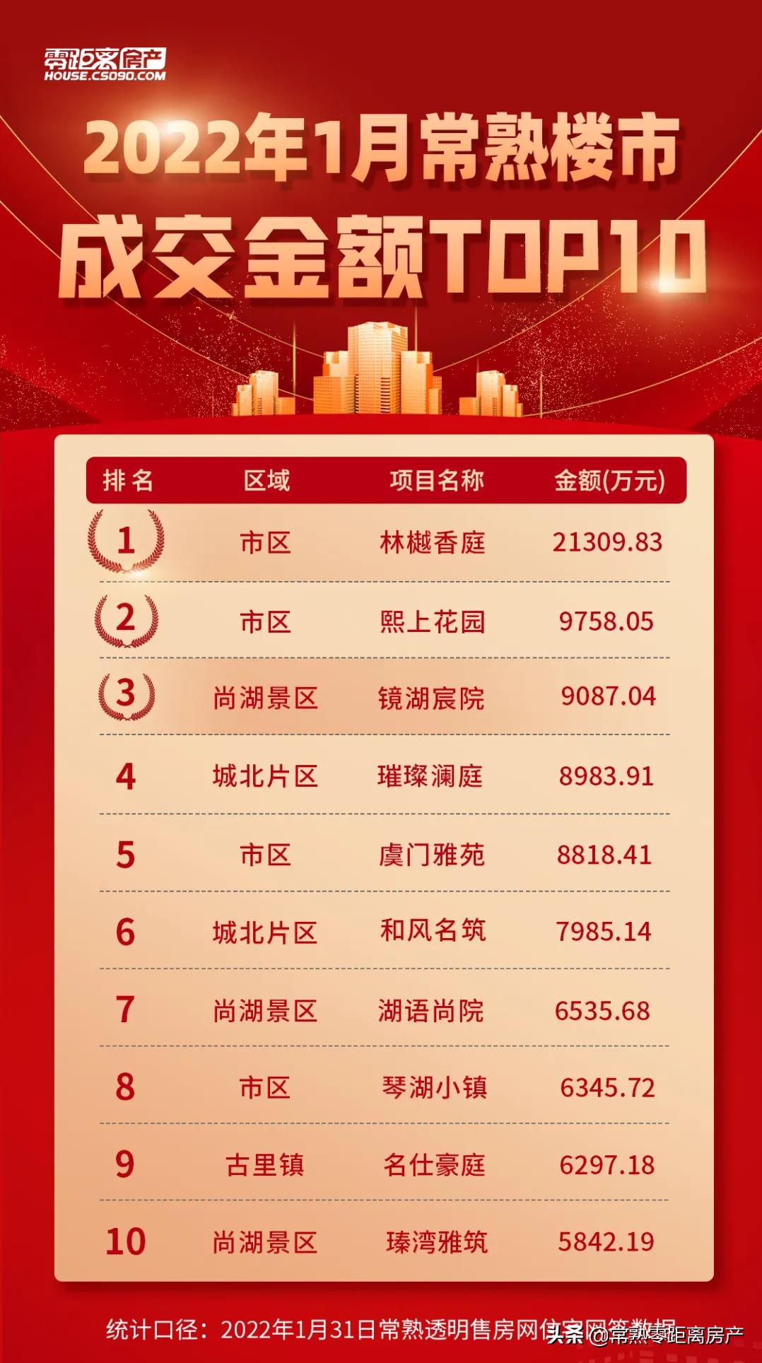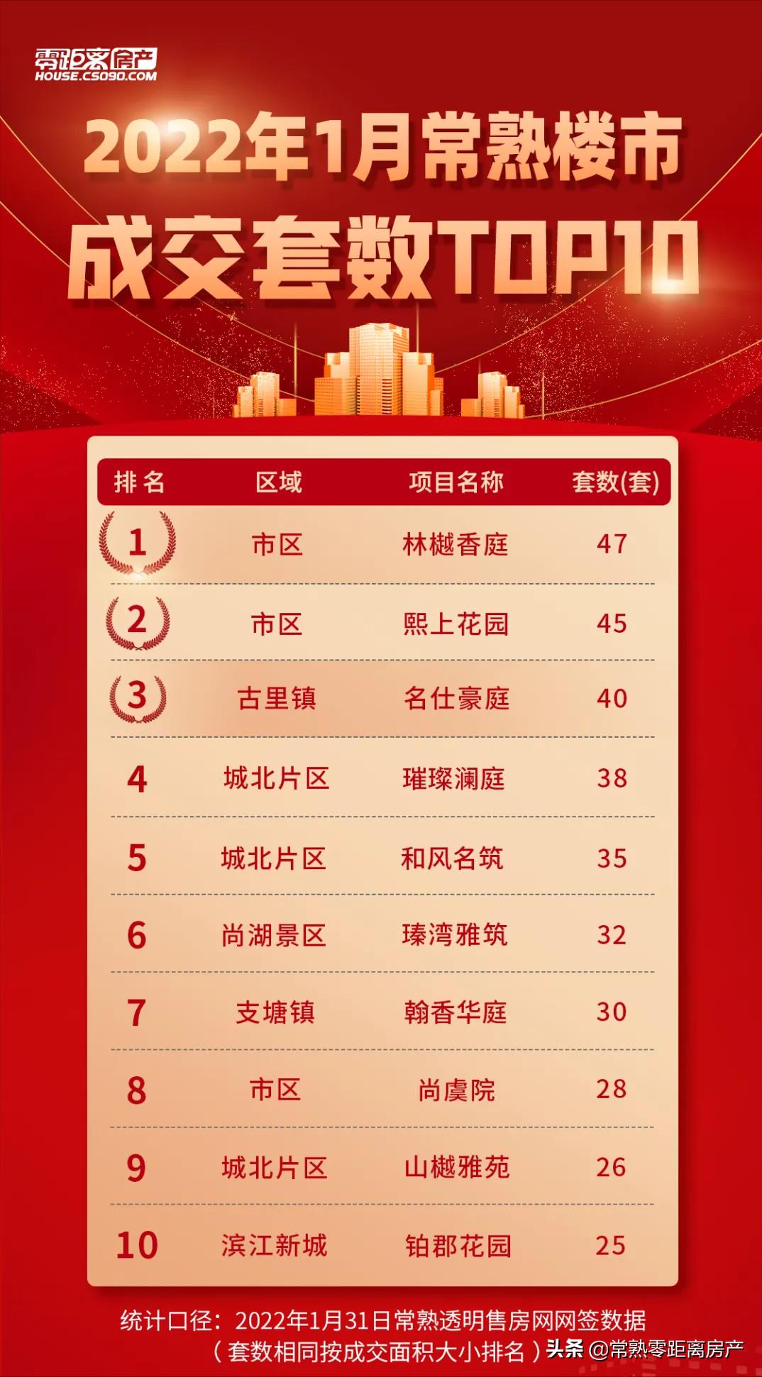 1月常熟楼市成交前十出炉!市场供应大幅减少 市区销量领先