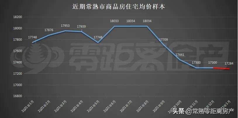 2022年1月常熟市商品住宅市场成交均价为17284元/㎡(据常熟透明售房网61个在售楼盘价格统计),较去年12月月微幅下跌。