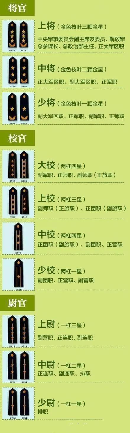 (注)军衔制。我国军衔制有三等十级,即少尉、中尉、上尉、少校、中校、上校、大校、少将、中将、上将。军队文职人员军衔,比照军校里的非指挥类专业,明星有已故的写《西游记》片尾曲词作者的闫肃,为“文职特级”,相当于上将,他是文艺界军衔最高者。宋祖英,文职专业三级,相当于少将。潘长江、李幼斌、韩红,相当于正师、大校级。上尉级张译,中校级林丹。2023年月收入,排职、副连6k-7k¥,正连8k-9k¥,副营1w,正营1.2w,副团1.6w,正团1.8w,副师2w,正师2.2w