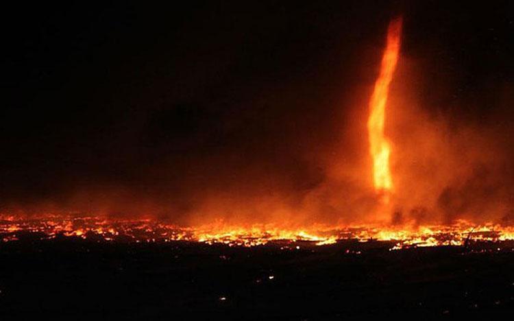 2008年,在美国加利福尼亚州科伦娜火灾中,出现风速有160公里每小时的火焰龙卷风。
