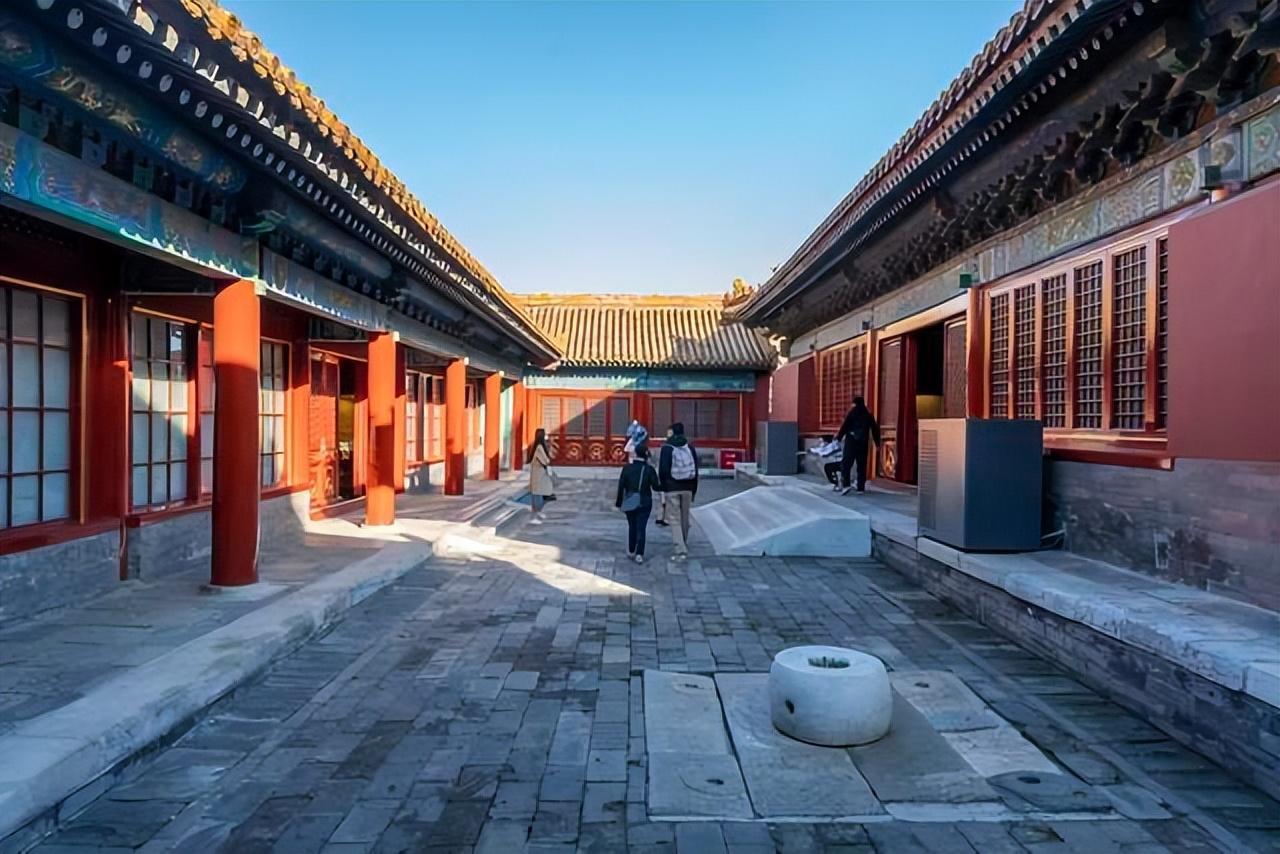 后殿的规模比景仁宫大一些,而且带有前檐廊。后院西侧有一眼井,可以看见四角有柱础的痕迹,说明这里是一座井亭。