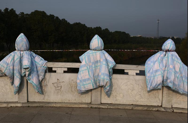 2. 雕塑上晒被子