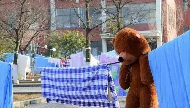 对于女生来说,寝室里总少不了一些大大小小的毛绒玩具,而这些毛绒玩具在清洗之后,经常会随着被子一起被主人拿到楼下去晒一晒。