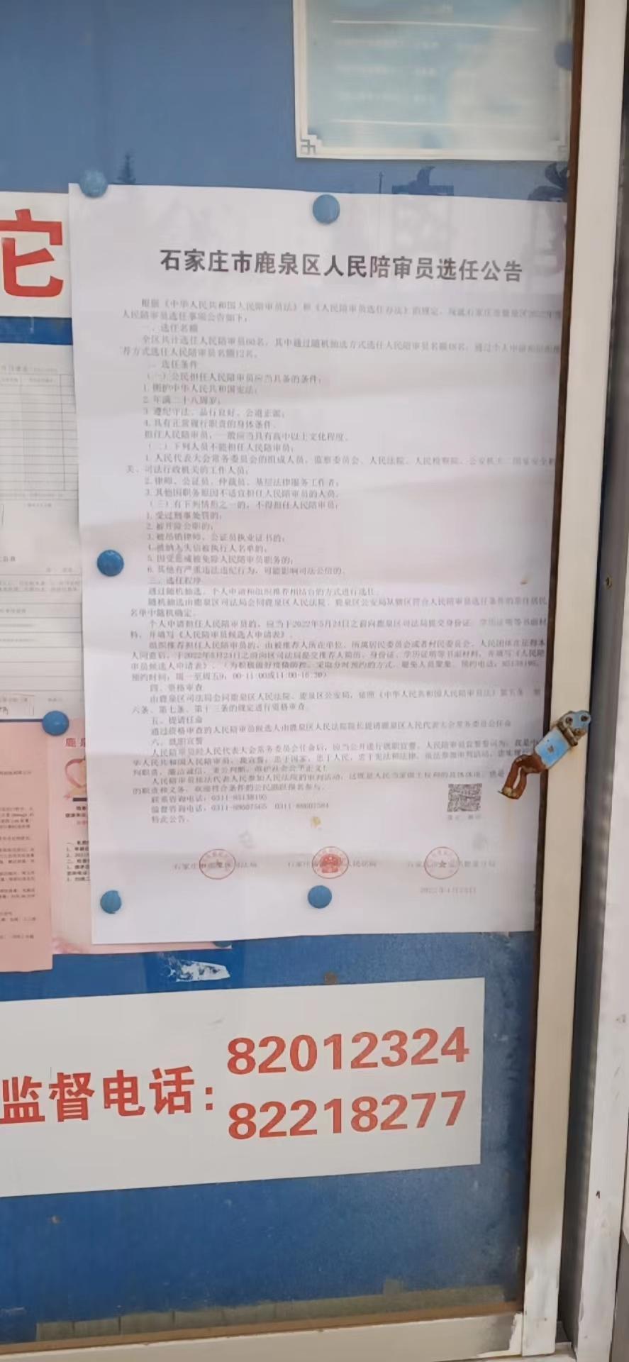 宜安镇西鲍庄村张贴的人民陪审员选任公告