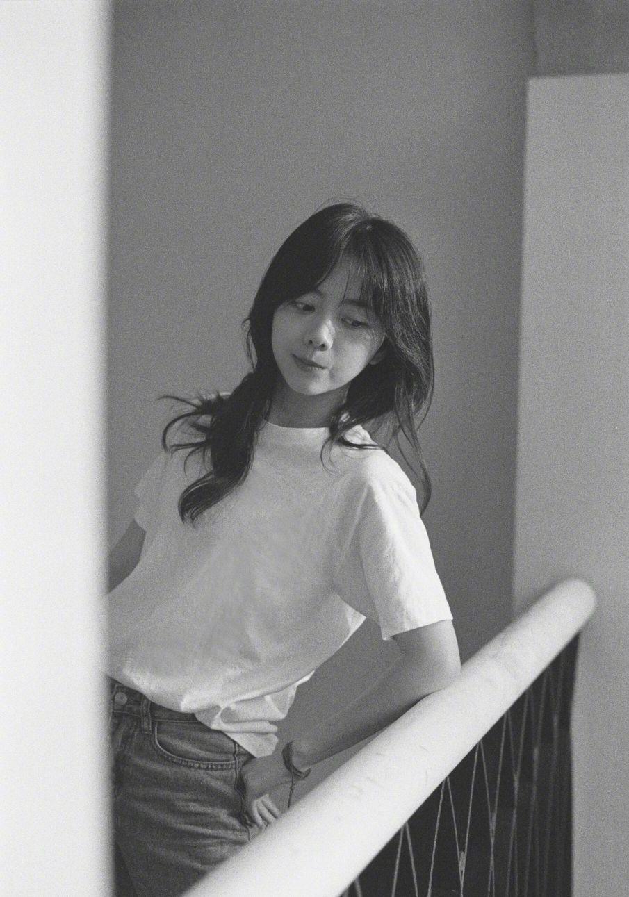 在午后的阳光中,谭松韵穿着这样一身非常普通且休闲的服装,微微扬起手臂,或者是靠在墙面带着略显严肃的表情,让人感觉这个女孩很有深意。