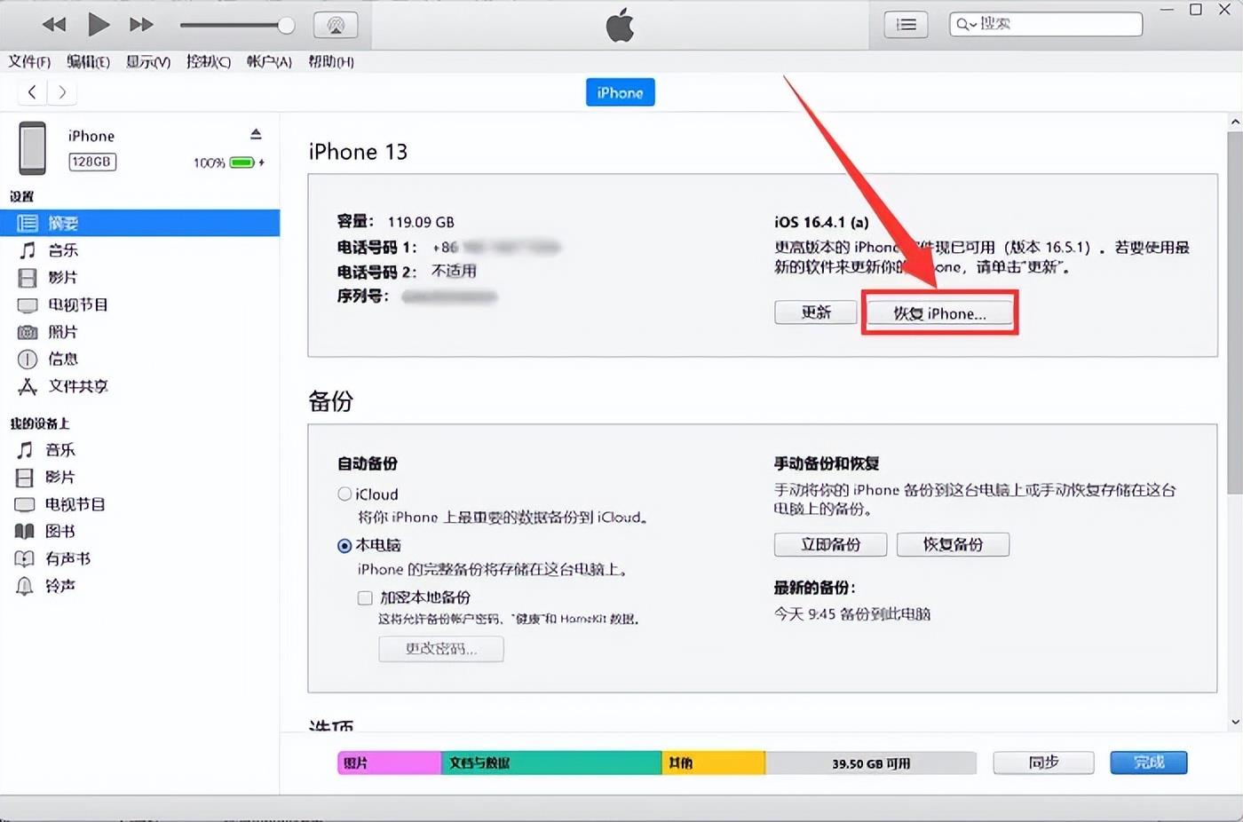 方法二:借助iTunes强制恢复出厂设置