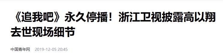 中国青年网2019-12-05:《追我吧》永久停播!浙江卫视披露高以翔去世现场细节