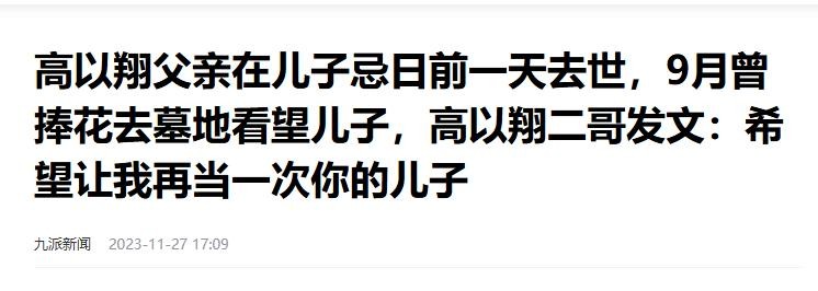 九派新闻2023-11-27:高以翔父亲在儿子忌日前一天去世,9月曾捧花去墓地看望儿子,高以翔二哥发文:希望让我再当一次你的儿子