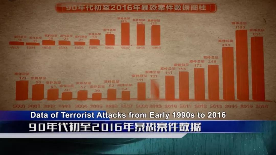 据不完全统计,自1990年至2016年,“三股势力”在新疆等地策划实施了数千起爆炸、暗杀、投毒、纵火、袭击、骚乱、暴乱等系列暴力恐怖案事件,造成大量无辜群众被害,数百名公安民警殉职,财产损失无法估算。