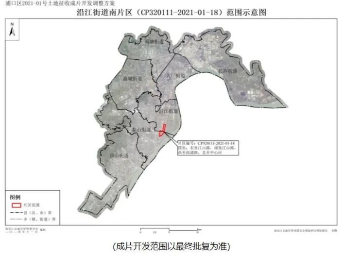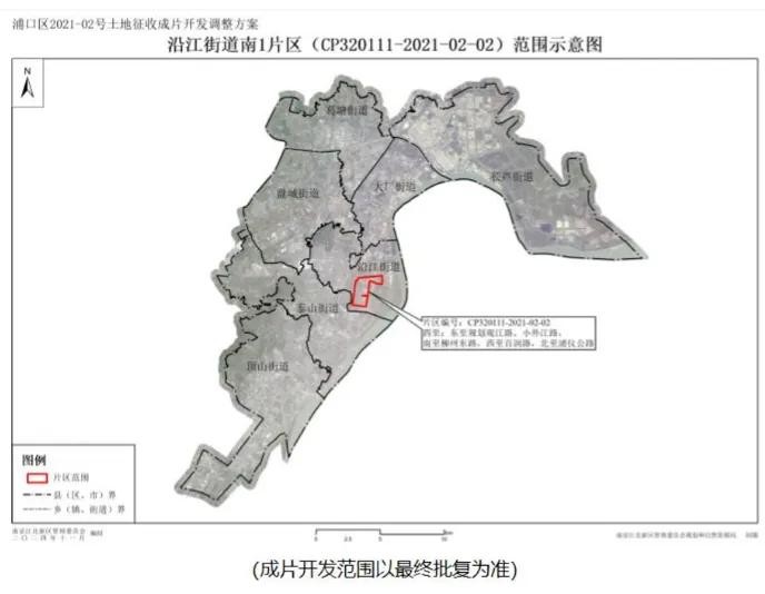 片区位于沿江街道,东至规划观江路、小外江路,南至柳州东路,西至百润路,北至浦仪公路。