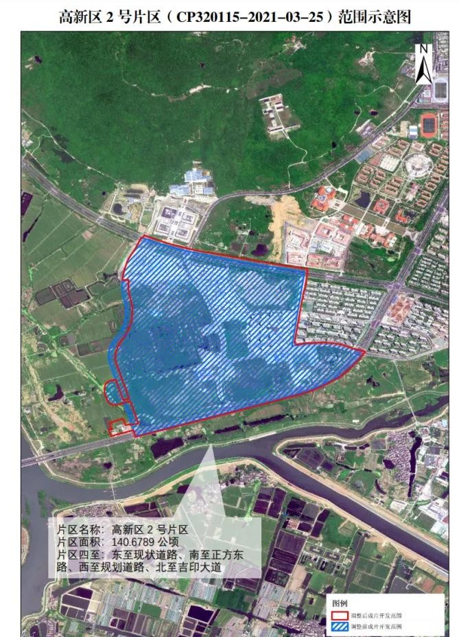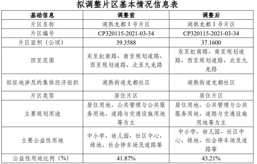 开发的类型为居住片区,将建设中小学、幼儿园、社区中心等配套,不过调整后开发面积有一定的缩减。