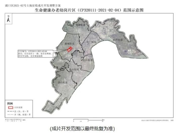 片区位于顶山街道和泰山街道,东至胜利路、滨江大道,南至石佛大街,西至浦滨路、万寿路,北至定向河,地处江北核心区。