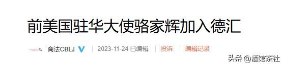 商法CBLJ:前美国驻华大使骆家辉加入德汇