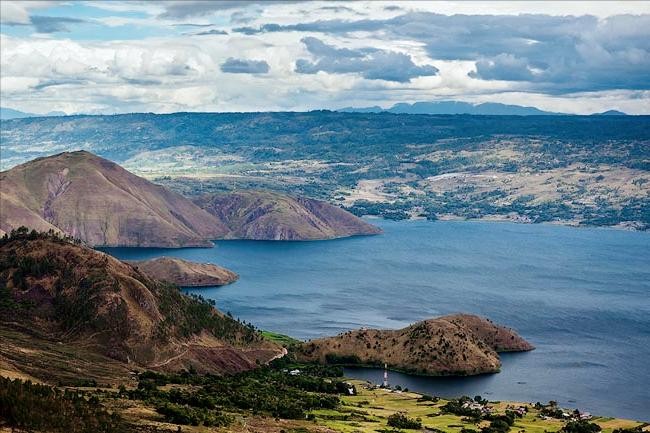 2. 多巴火山口(印度尼西亚):多巴火山口位于印度尼西亚苏门答腊岛,因发生地球历史上最大规模的火山喷发之一而闻名。大约74,000年前,这个超级火山引发了一场世界末日般的爆炸,火山爆炸指数(VEI)的震级为8,对全球气候产生了重大影响。