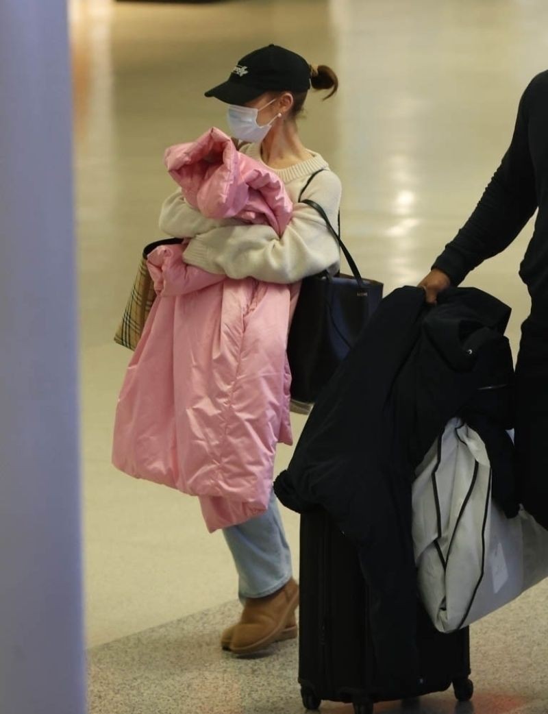 美国女歌手爱莉安娜·格兰德(Ariana Grande)在迈阿密机场
