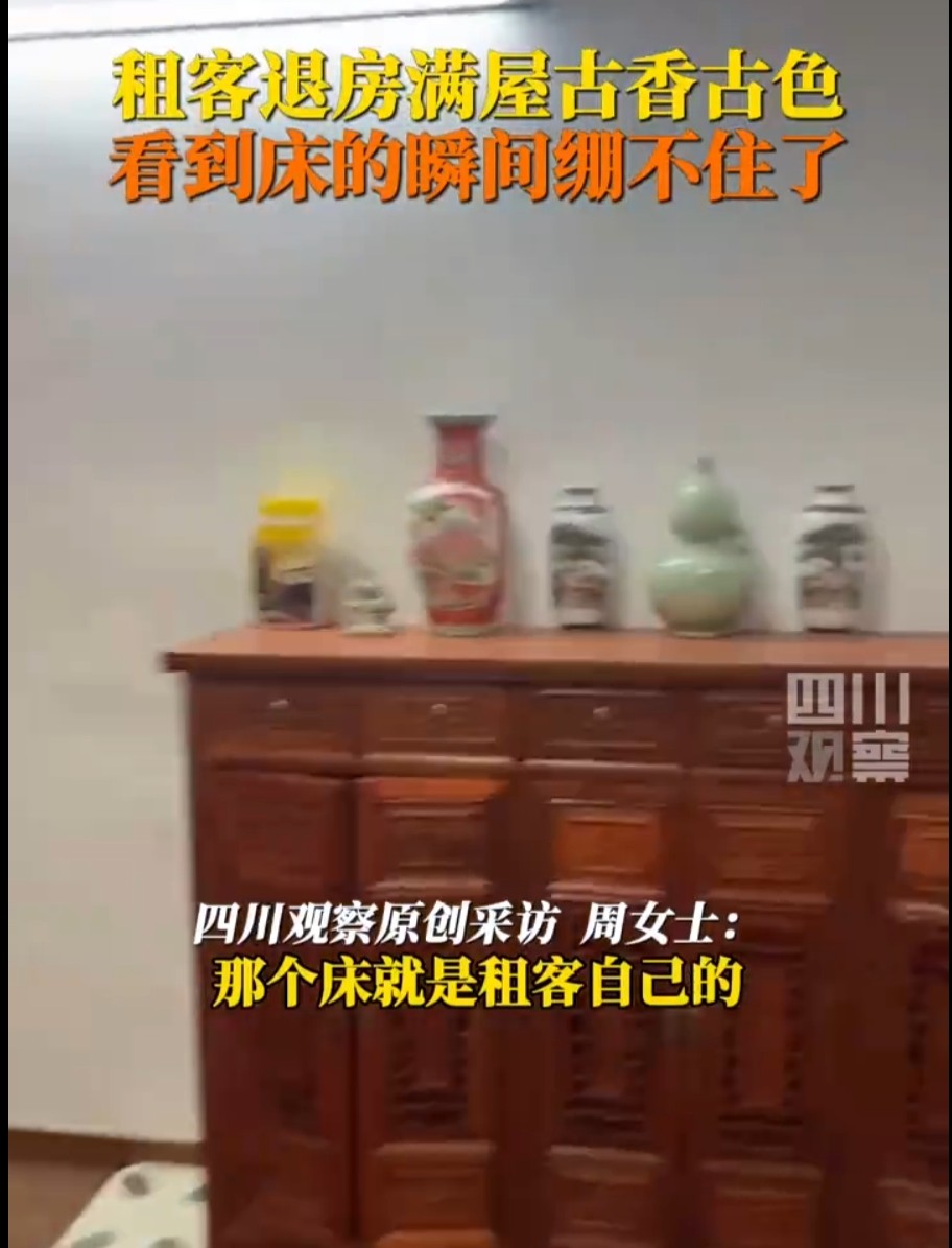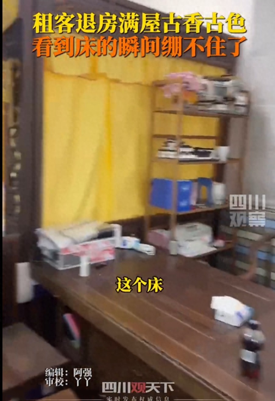 据现场照片显示,这些家具装饰精美,极具古风,让人仿佛置身于古代宫廷之中。网友们纷纷调侃,猜测这名租客的精神状态是否正常。有人戏称,这名租客可能是穿越时空的“宫女”或“太监”,也有人猜测他是否在玩cosplay。