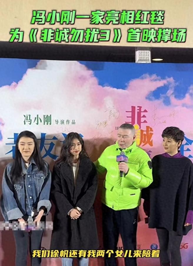 近日,知名导演冯小刚携夫人徐帆及两位女儿出席了某新片发布会。舞台之上,冯导身披绝对抢眼的荧绿羽绒外套,引人注目的同时,也显露出其特有的风采和活力;而夫人徐帆则选择了深色调服饰,尽显低调。大女儿冯思羽已经23岁,小女儿徐朵年仅17岁,他们的成长历程充满故事,引人关注。此次冯导新作的即将上映,无疑将再次引爆观众的热情。