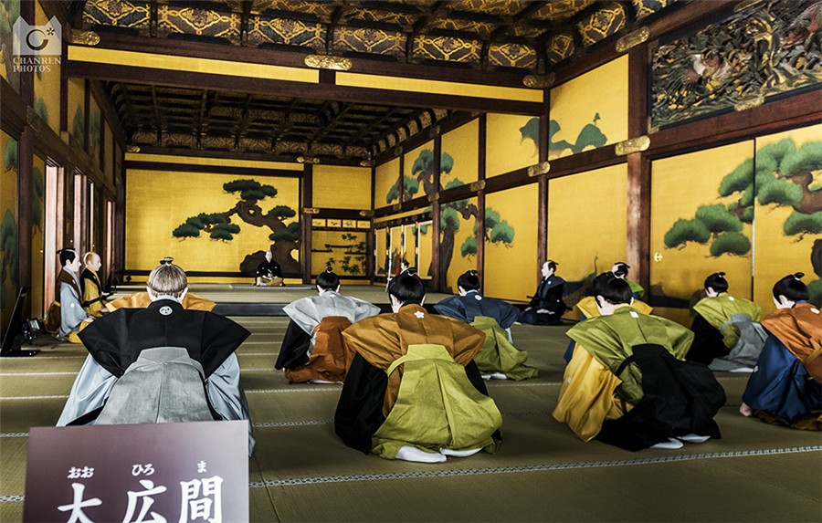 穿过巨大的唐门(Kara-mon)就是二之丸御殿,它是日本的国宝级建筑,依然是中国盛唐风尚的建筑和装修,华丽中透着厚重大气。建筑内部被分为五个部分,每部分由若干房间构成。