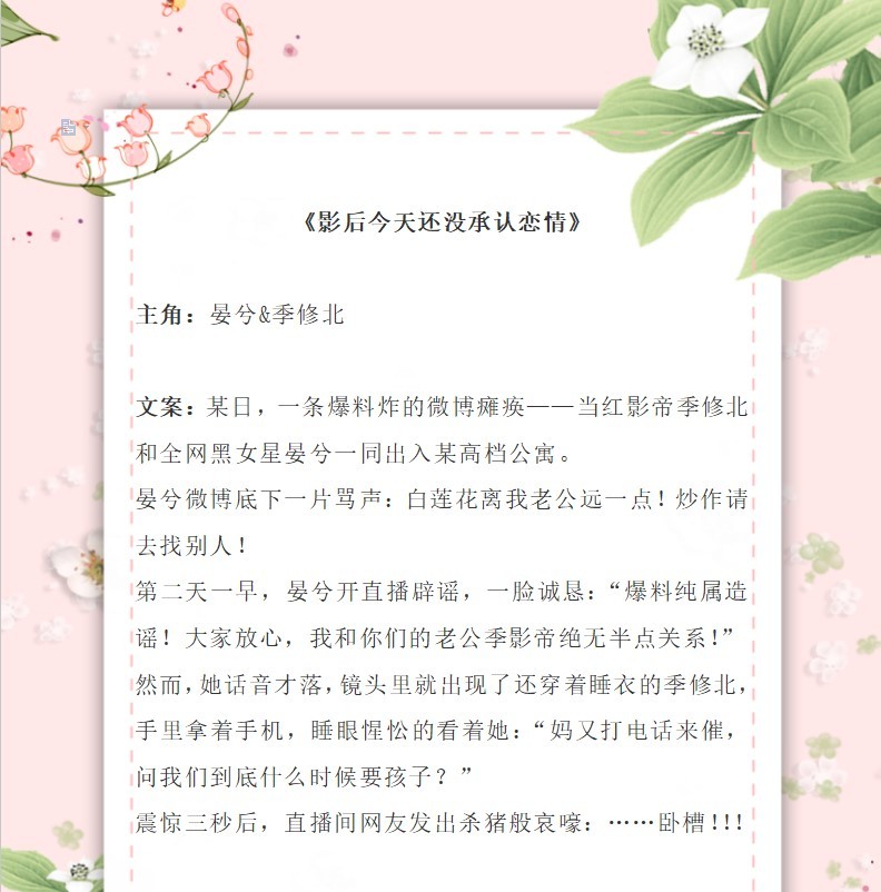 推荐7本超级好看的娱乐圈爽文,女主有颜有实力,男主宠妻专一