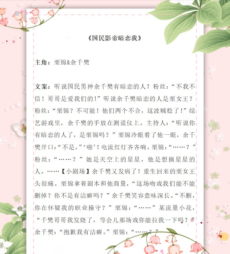 书评:聪明机灵俏皮女主vs霸气情深占有欲超强男主。重生娱乐圈女王和国民男神一起走花路的故事,超级好看,强烈推荐!