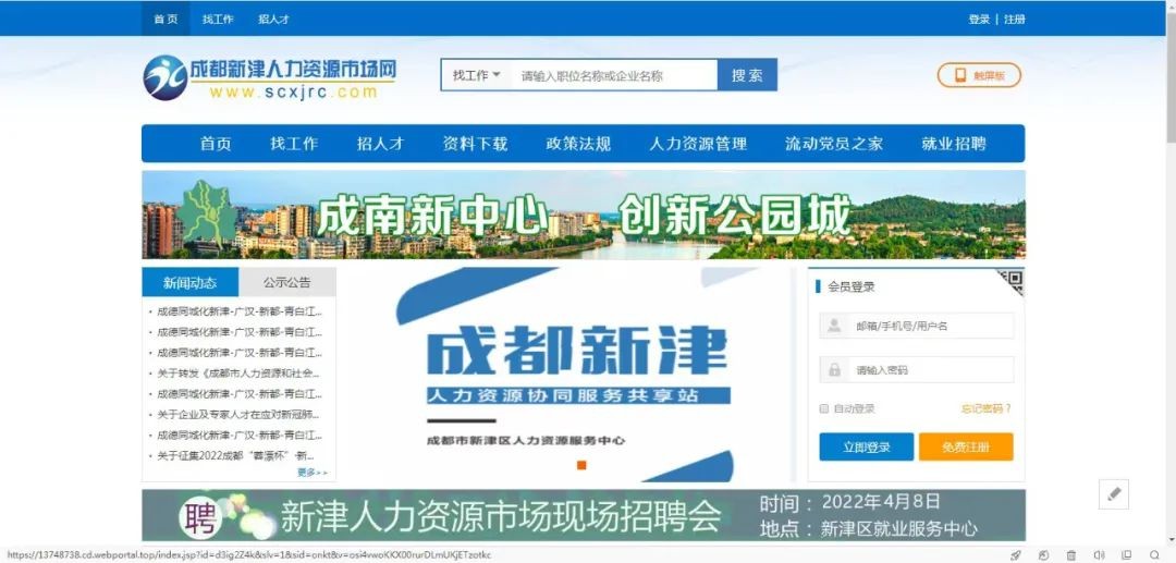 线上依托“成都新津人力资源市场网”“新津就业”微信公众号与中江、彭山、广汉、仁寿政府门户网站,每月定期举办“成德眉资同城化人力资源区域协作网络招聘会”,不间断发布岗位信息。