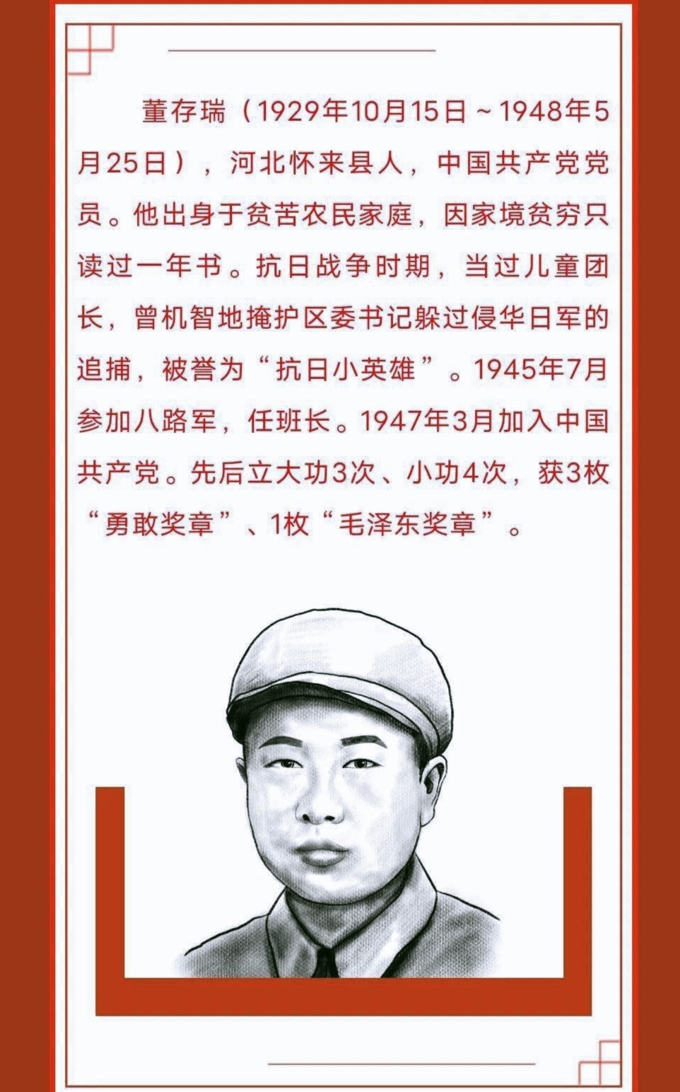 21 岁的他在抗美援朝战争中,用自己的胸膛挡住了敌人的枪眼,为国家和人民献出了宝贵的生命。