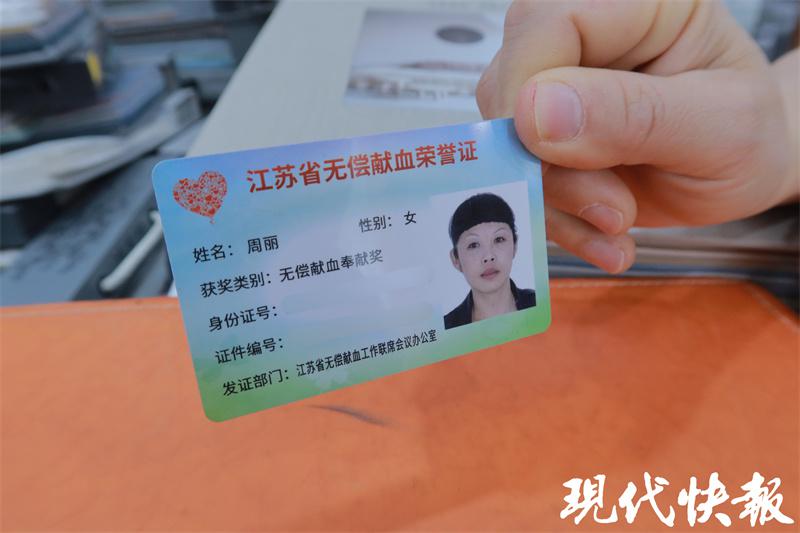 尽管有江苏省无偿献血荣誉证,可以免费乘坐城市公共交通工具,但周丽依旧很少使用这项权益。周丽已经习惯跑步或是骑山地自行车上下班。