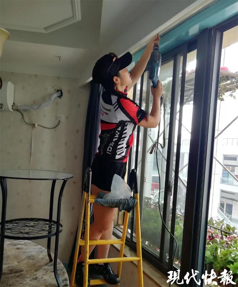 △正在为客户装窗帘的周丽