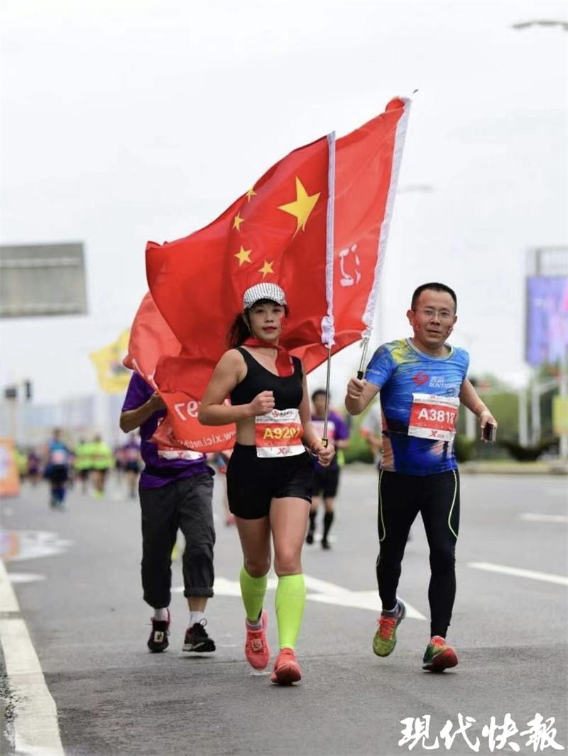 举着国旗跑步," 马拉松就是我放松的方式 "