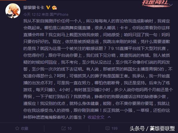 可能卡卡也知道了西门并没有黑自己,只是被直播间素质低下的黑粉乱带了自己的节奏,并且表示要与这些质疑她代打的喷子们刚到底!