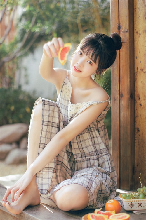 把镜头想象成自己亲近的人,手与镜头自然地互动起来,像下面的模特一样,向着镜头递吃的,画面会更生动、有爱。