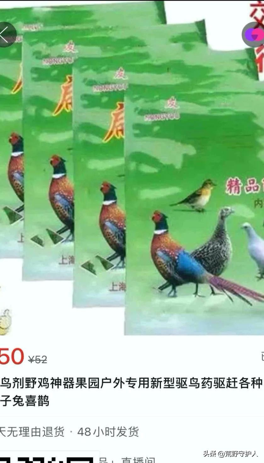 2020 年,“电商无野行动”对电商平台售卖毒鸟药——“扁毛霜”做了倡导:淘宝再现毒鸟药网店20多家,有买家称“大鸟没少弄”,后新华社也对该问题做了报道。目前我们通过检索我们发现电商平台明面上售卖的扁毛霜已经做了下处理。但是还有零星店家在售卖。