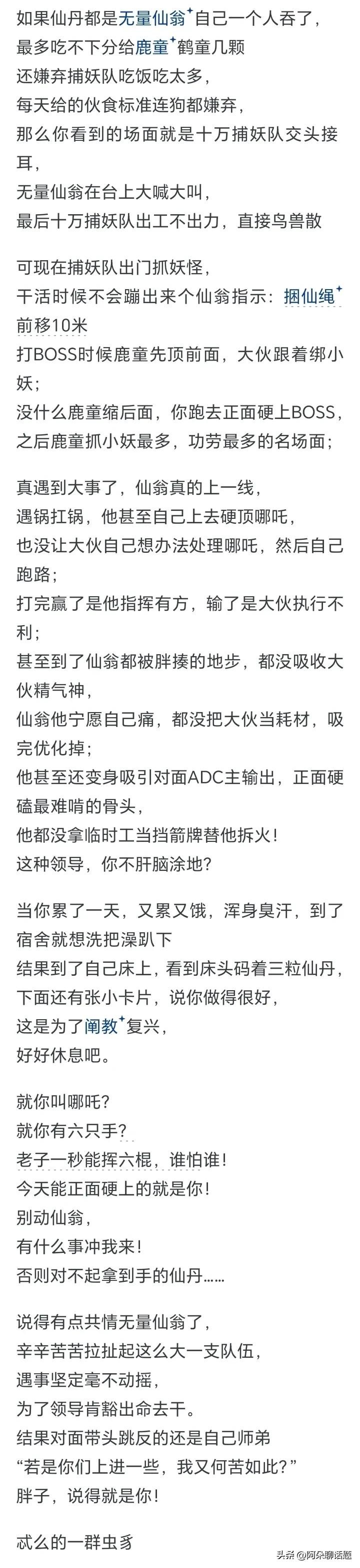 今天给大家带来的话题是:“《哪吒2》得知仙丹来源后,为何十万捕妖队仍然能做到无一叛变? ”看完文章后,欢迎大家在评论区说出自己的看法。