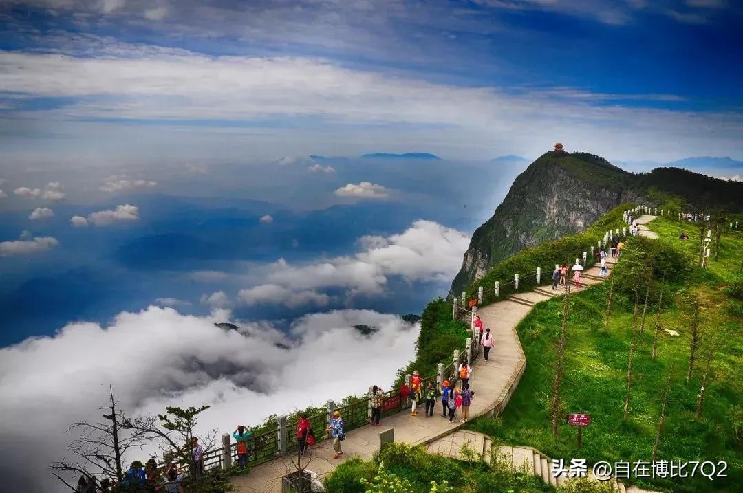 ◦ 峨眉山:坐落于四川省乐山市,是普贤菩萨的道场,佛教传播早,有报国寺、万年寺等30座寺庙,还有贝叶经、普贤骑象等珍贵文物,是世界文化与自然双遗产。