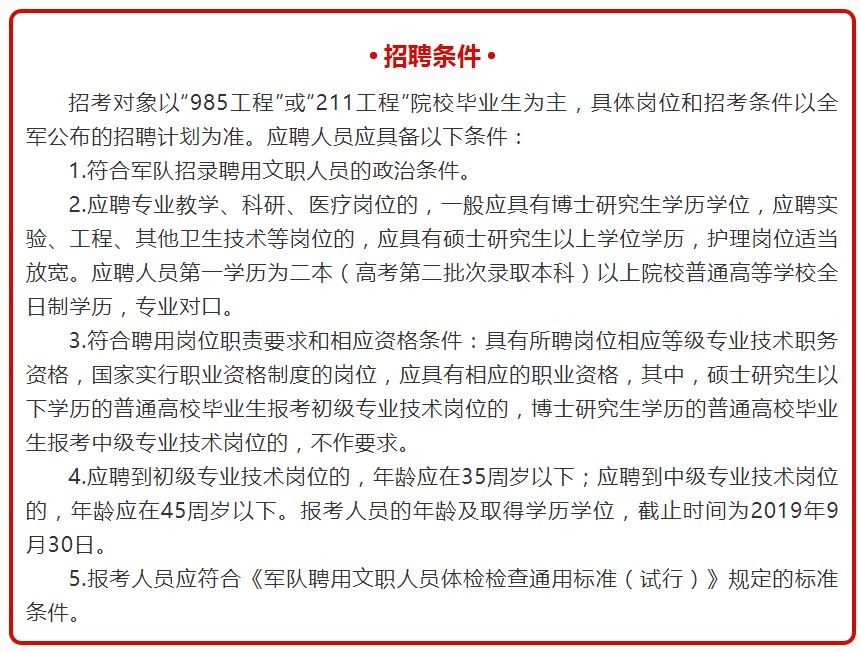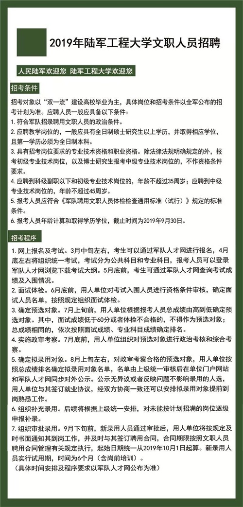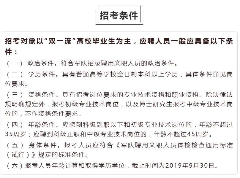 2019年军队文职人员招聘信息来了,请收藏!(点击可阅读详情)