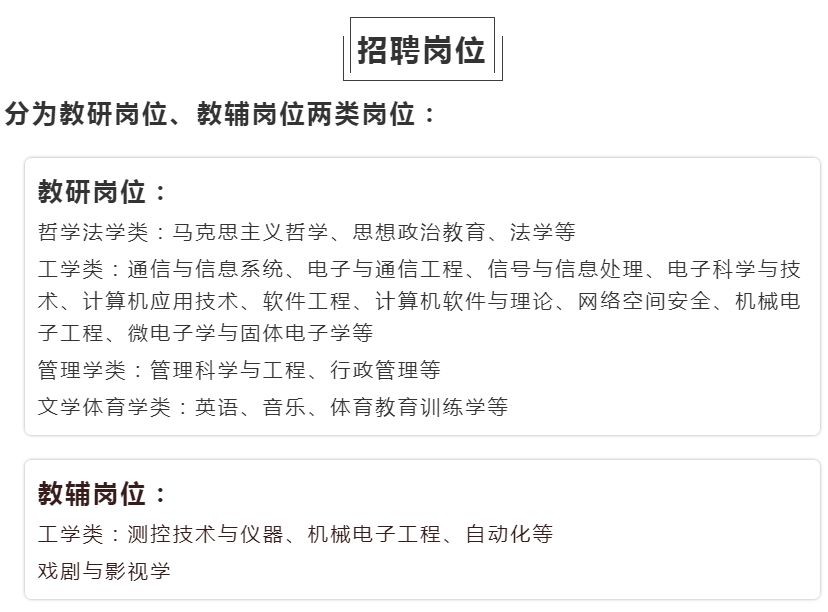 教学岗位,大学基础专业课程教学,主要包括汉语言文学,英语,俄语,哈萨克语,哲学,政治,历史,计算机基础,地理,数学,物理,机械工程,控制科学与工程,信息与系统工程,仿真,管理,军事体育,以及高中体育教育等。教学保障岗位,职业教育,网站设计与维护,新闻编辑,会计等。