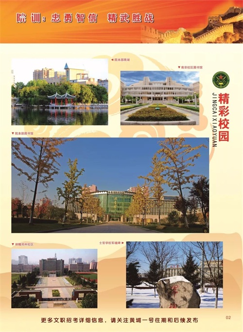 学院占地总面积2972.66亩,呈“两地七区”的分布式格局。调整转隶国防科技大学后,学院由系统指挥院校向军委联合院校跃升,办学类型由单纯的任职教育院校,向基于高等教育的任职教育转变。
