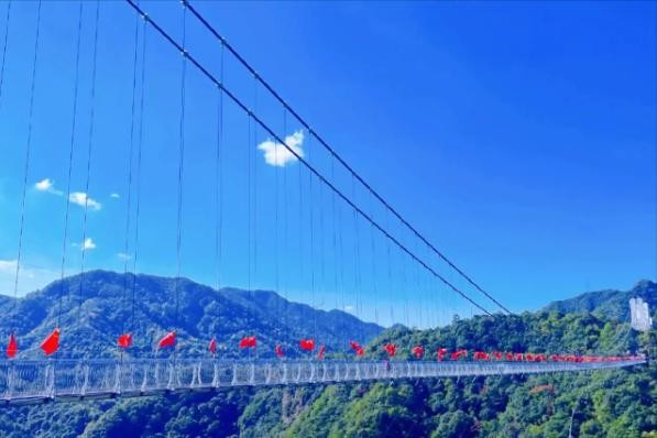 4、潘家小镇风景旅游区:国家3A级旅游景区,位于三门县横渡镇,被誉为“三门绿肺”。主要景点包括双龙桥、玻璃景观悬索桥(一座12D玻璃景观悬索桥,全长419米,垂直高度199米,横跨于牛郎峰和织女峰之间,被誉为“鹊桥”)、七彩滑道、星空馆、水上乐园等。