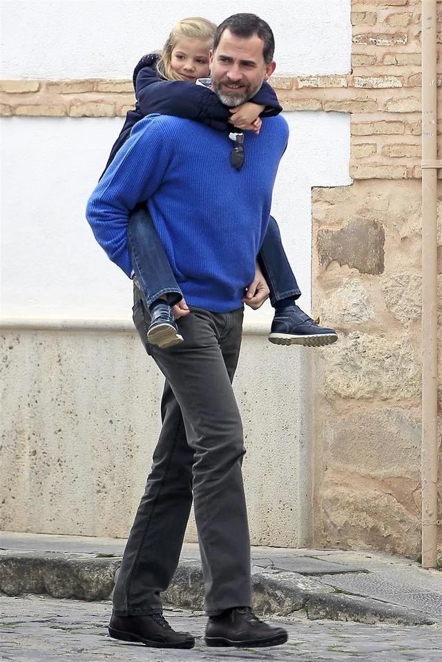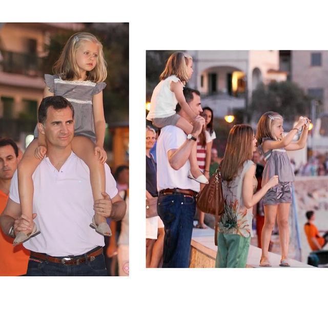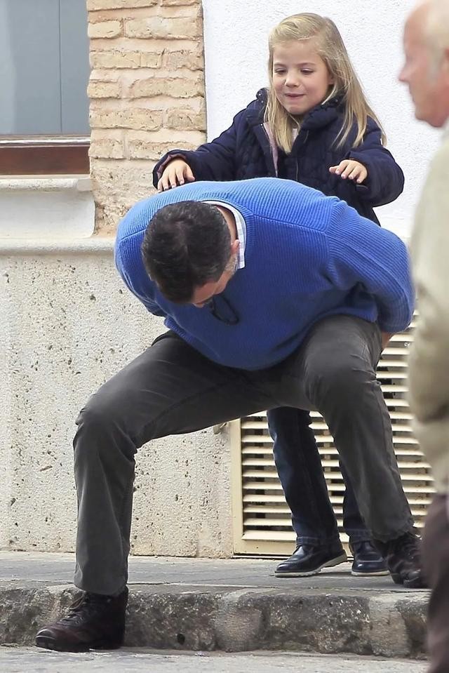 走走逛逛的小孩子自然累,而作为“女儿奴”费利佩的肩膀是做什么的?肩膀当然就是给女儿们坐的。