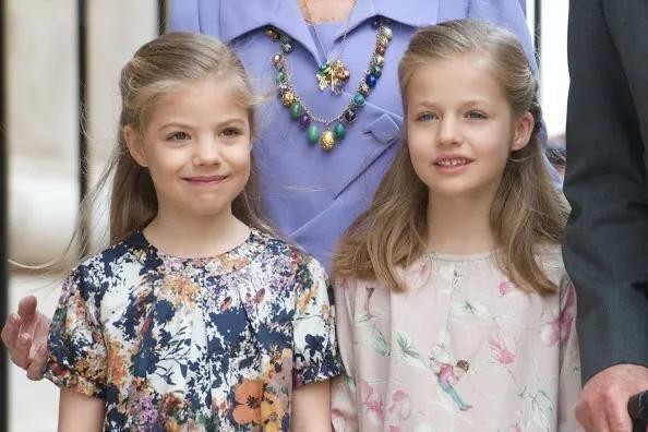 2015年在马洛卡度假,和妈妈穿亲子装的索菲亚公主,看起来乖巧可爱~